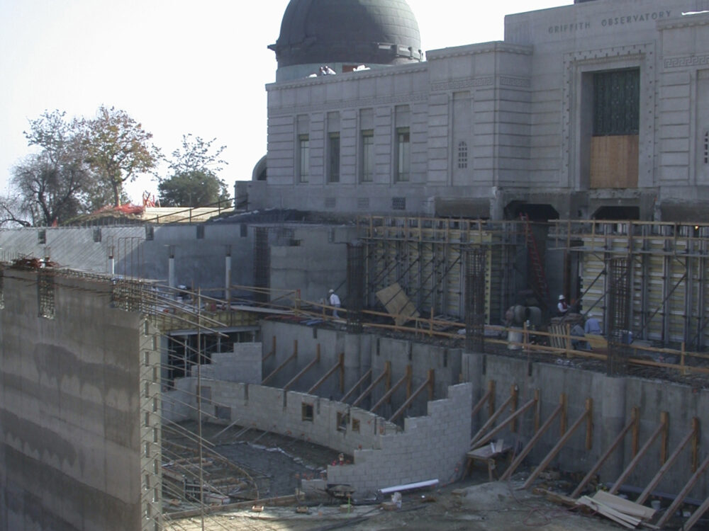The effort started in 1978, with the creation of Friends Of The Observatory (FOTO, now Griffith Observatory Foundation) by Observatory Director E.C. Krupp and Debra and Harold Griffith (Harold was Griffith J. Griffith’s grandson). Planning for the renovation and expansion project began in 1990 with development and approval of a Master Plan. Throughout the 1990s, FOTO worked with the City to secure the baseline public funding needed to get the project underway, though a substantial amount of the total funding for the project ended up coming from private contributions to FOTO. With architects hired in 1997, the City and FOTO established a unique public-private partnership focused on four primary goals: renovation; expansion, planetarium; and exhibits. The Governor of California, Mayor of Los Angeles, and other public officials broke ground for the project on October 30, 2002, and construction started soon thereafter. Theater and exhibit installation took place mostly in 2004-2006. The building reopened to the public on November 3, 2006.