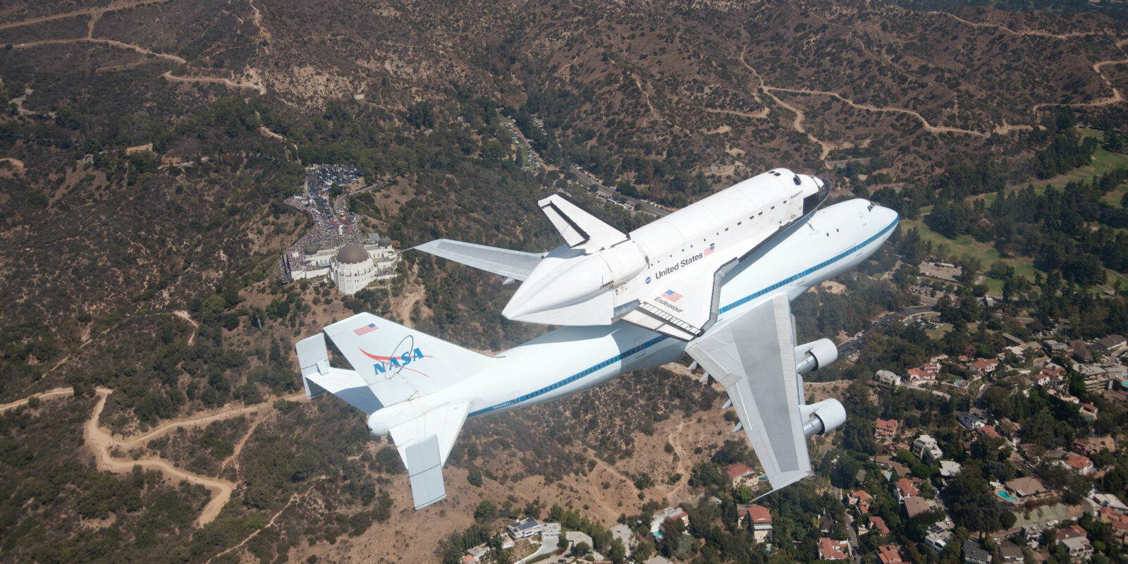 On Friday, September 21, 2012, Griffith Observatory hosted thousands of people for multiple flyovers by the space shuttle Endeavour as it passed over Los Angeles landmarks prior to landing at LAX.
