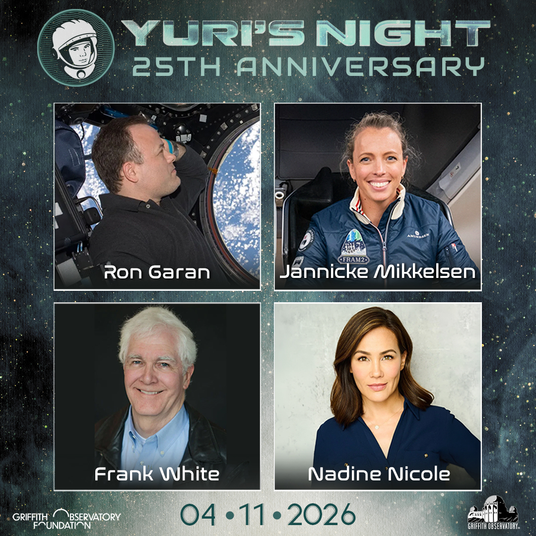Presented in partnership with Griffith Observatory Foundation, Yuri’s Night Los Angeles 2026 will be an all-day public celebration (10:00 a.m. – 10:00 p.m., PDT) of the first human spaceflight. The day will feature astronaut talks, interactive exhibits, science demonstrations, and presentations. General admission is free and open to all ages.