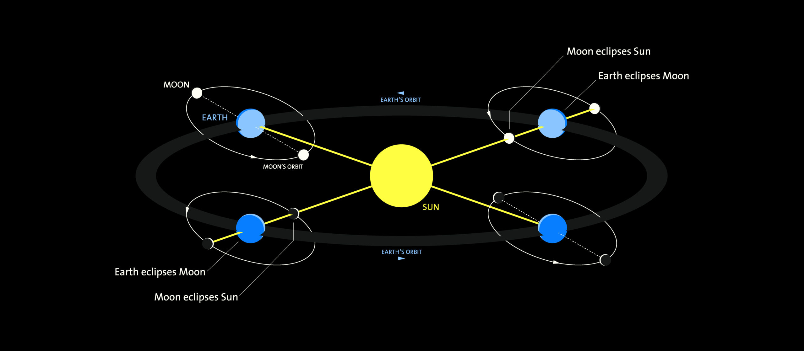 Eclipses are astronomical spectacles that happen when one celestial object moves into the shadow of another. We witness these awe-inspiring events during precise alignments of the Sun, Earth, and Moon. Solar eclipses occur when Earth moves into the Moon’s shadow. We see lunar eclipses when the Moon moves into Earth’s shadow. Other planets have eclipses when they and their moons line up with the Sun.