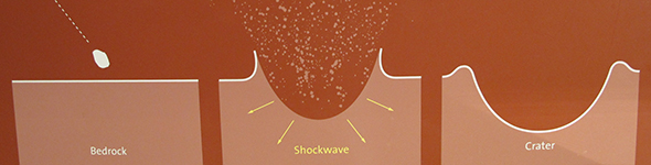Shattercones are shock waves preserved in stone. They occur when an impact blasts into layers of bedrock and puts the rock under tremendous pressure. It shatters, creating three-dimensional cone-shaped patterns. The tips of the cones point back to the impact source.