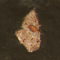 This chip from the Moon’s surface is a mixture of many kinds of rock and fragments of lava that melted together. A meteorite impact sometime in the distant past knocked it off the Moon’s surface. It fell to Earth and was found in Oman in 2002.