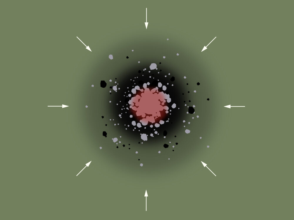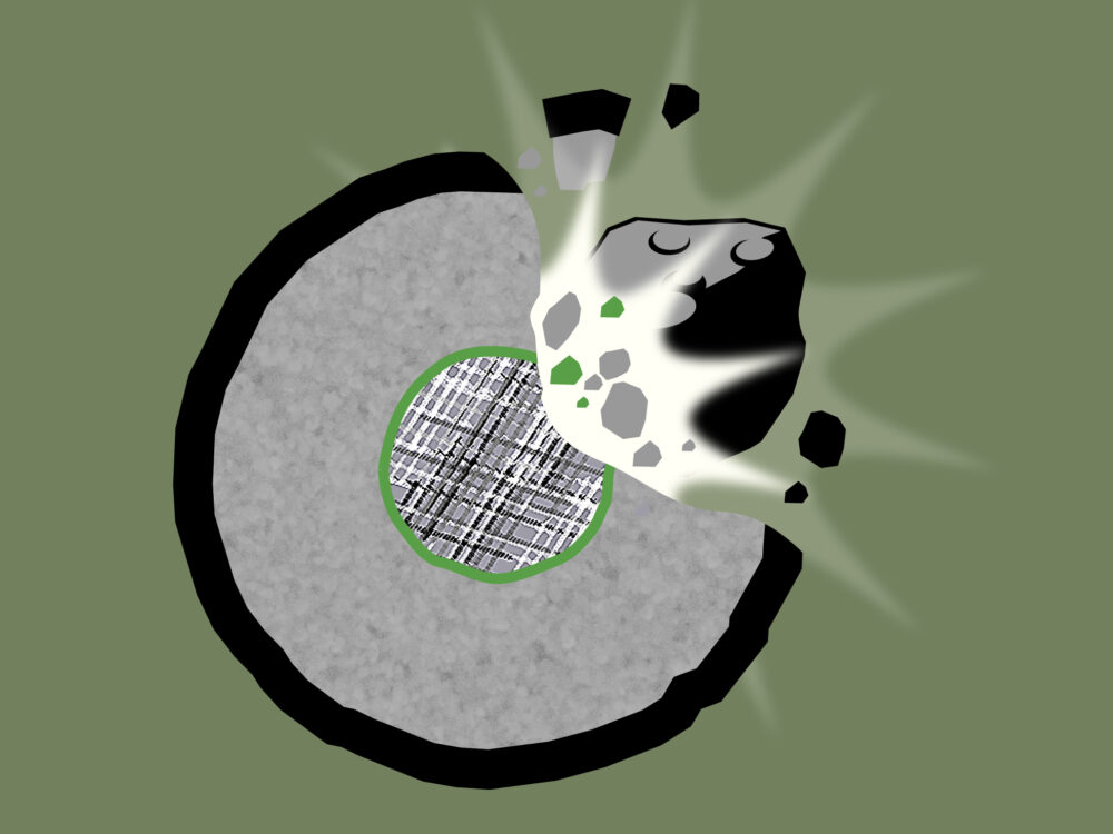 Collisions break apart large asteroids, scattering fragments through space. The mineral content of each piece tells us where it formed in the original asteroid.