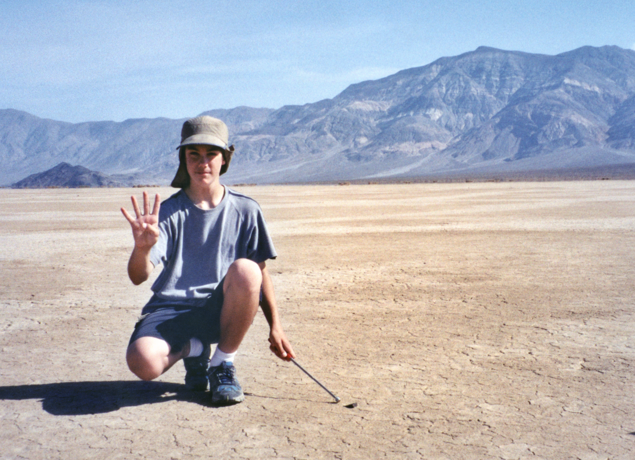 Meteorites can be hidden by Antarctic snow for years. Every year, expeditions hunt for them on the ice fields during summer in the southern hemisphere. The meteorites that fall in the world’s deserts and on dry lakebeds can lie undisturbed until hunters like Jason Utas find them. Here, he signals his fourth find of the day at a lakebed site in eastern California.