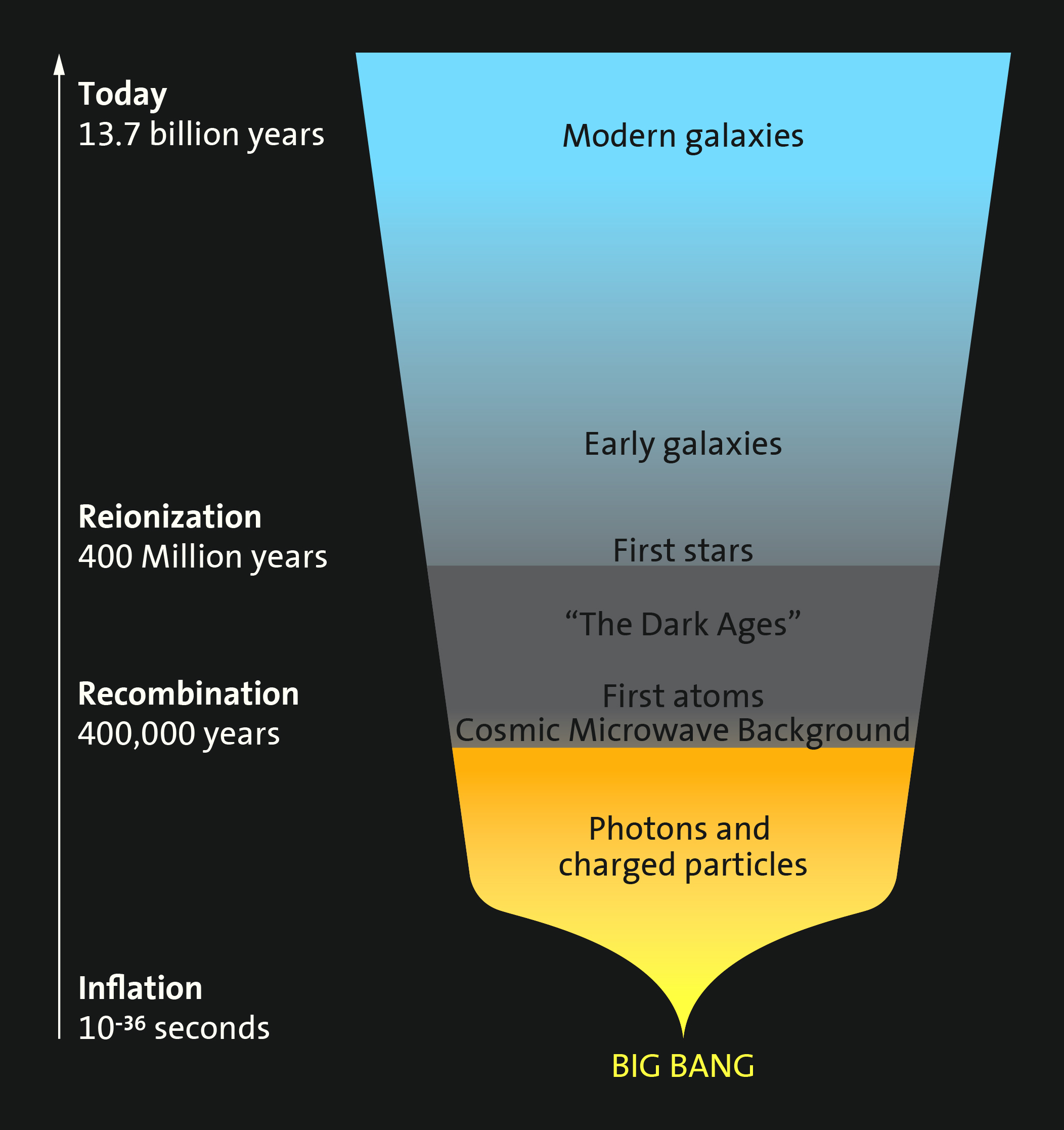 When we gaze deep into the universe, we look back into time. We see objects as they were when the light left them on the long journey to our telescopes and eyes. Using wavelengths of light beyond the visible, we can observe the universe back to nearly the beginning. This helps us create a timeline of cosmic evolution.
