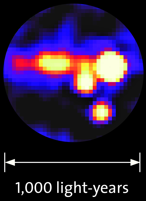 On January 31, 1993, the Compton Gamma Ray Observatory recorded the “Superbowl Burst,” a flood of gamma rays pouring out from an object in space. This image (left) targets the source’s location near the constellations Virgo and Corvus.