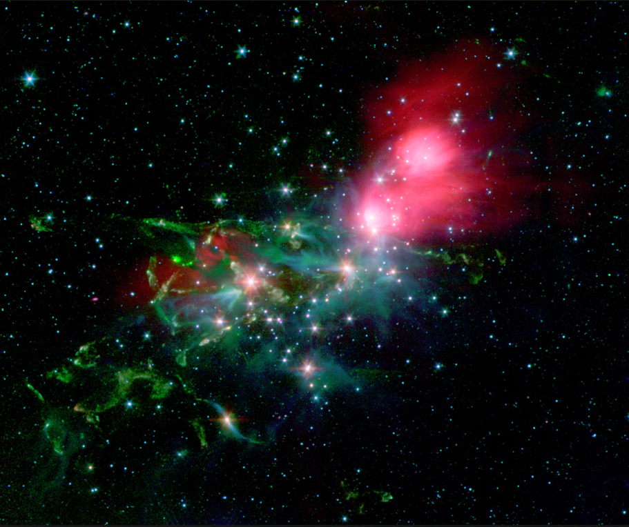Stellar nurseries are active places, but the clouds of gas and dust that give birth to stars keep us from seeing the action. Infrared light from newly formed objects, however, passes through those clouds.