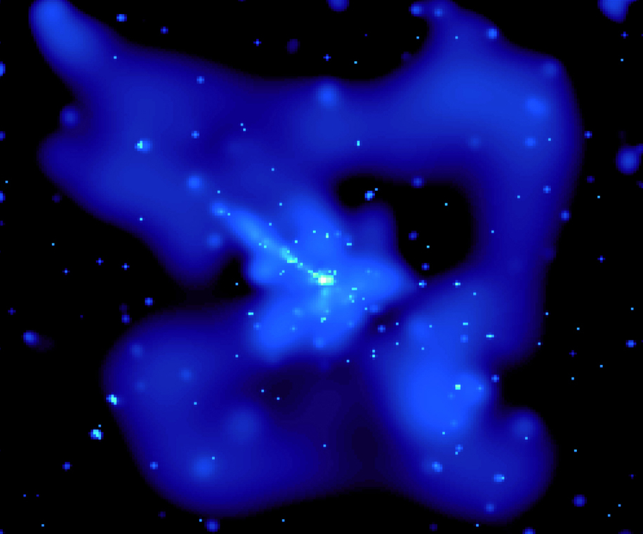 When astronomers study a galaxy in turmoil, they always see something fascinating. The Chandra X-ray Observatory studied Centaurus A (left) and found evidence of a huge jet spewing out material from the galactic core, as well as two arcs of x-ray-emitting gas.