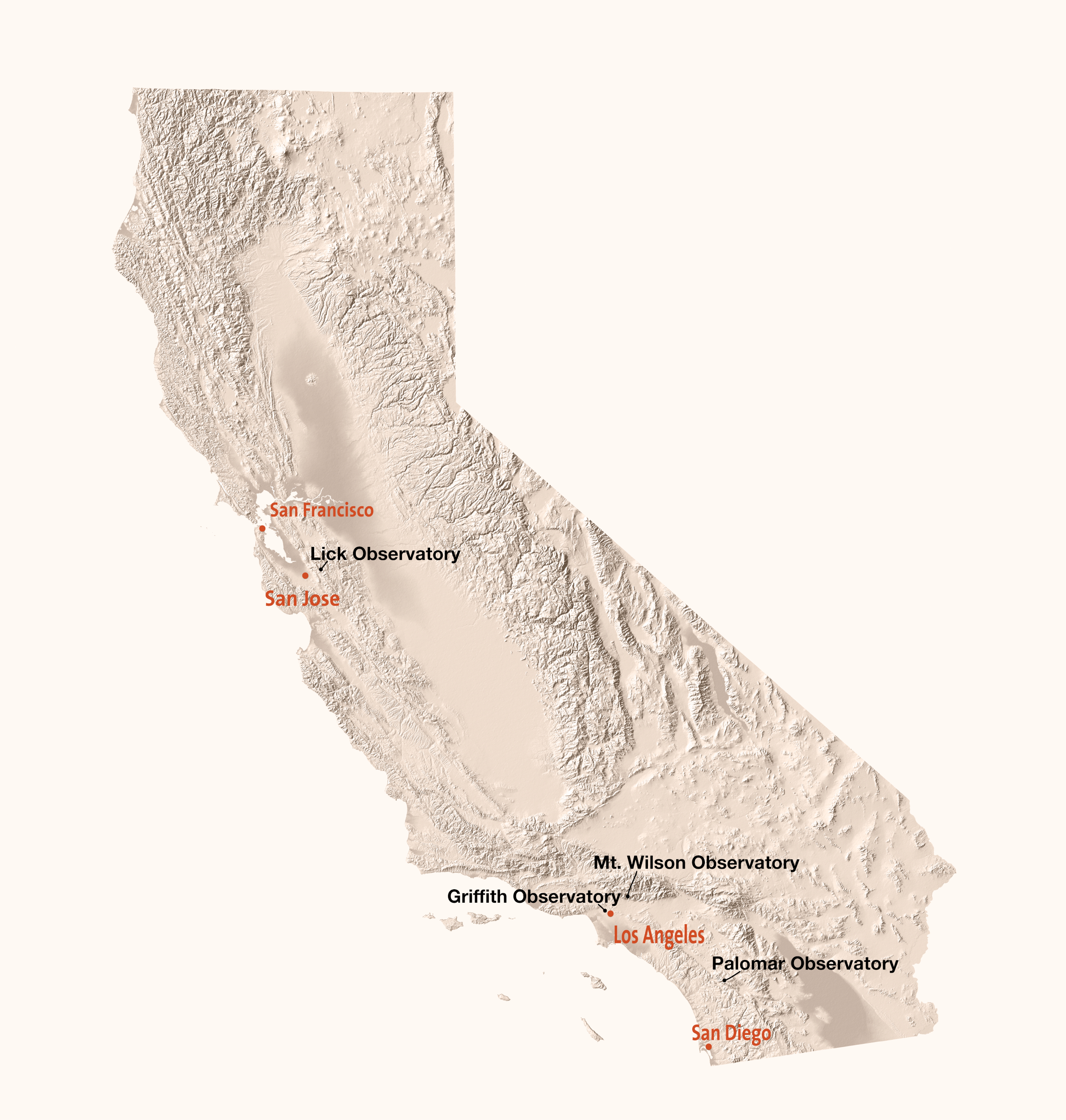 Late in the 1800s, astronomers came to California looking for steady mountaintop air and a clear window on the universe. They built the largest observatories in the world and made discoveries that transformed our view of the cosmos. Their work inspired amateur stargazers to explore the sky. It also shaped the creation of places like Griffith Observatory, which was built for public astronomy.