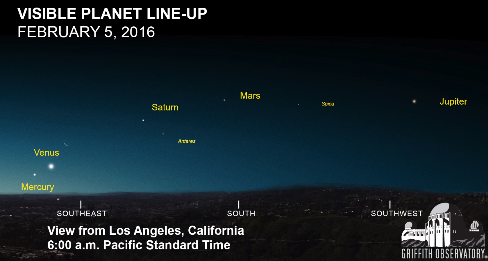 A line-up of all five bright planets is happening at dawn from mid-January through February 23, 2016